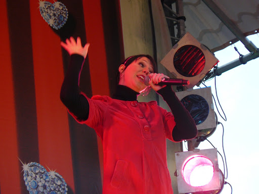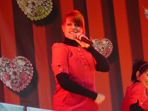 K3 al op het podium toen we aankwamen (danspasjes aan het leren aan de kindjes)